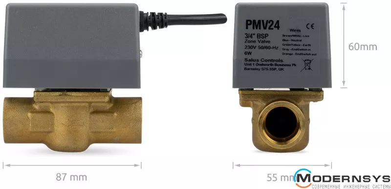Технические характеристики: 2-х ходовой клапан Salus (Салус) с электромеханическим приводом 3/4” PMV24