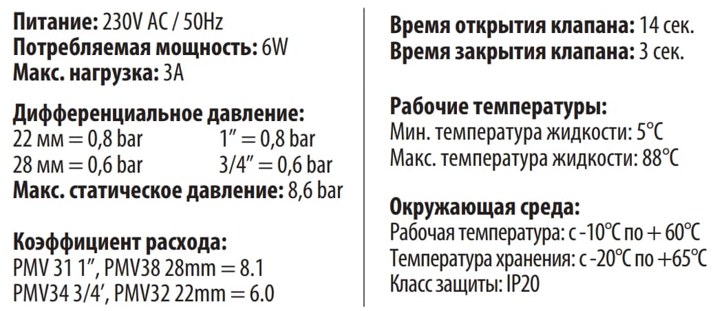 Технические характеристики: 3-х ходовой клапан Salus (Салус) с электромеханическим приводом 3/4” PMV34