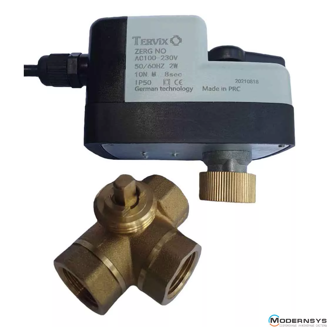 Описание: 3-ходовой шаровой клапан н/у 1 1/4" DN32 с самовозвратным электроприводом Tervix (Тервикс) Pro Line ZERG