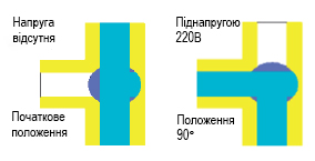 Принцип действия: Принцип – on/off. Клапан с приводом имеет исходное положение «открытый» и 2-х точечное управление (N+L, 220В). При подаче напряжения на привод он переводит клапан в положение «закрыто», а при снятии напряжения по поводу – в положение «открыто». В случае 3-х ходового клапана (см. рис.) – при подаче напряжения на привод он возвращает шток клапана в положение 900 и переключает поток жидкости в другую ветвь. При снятии напряжения по поводу – клапан возвращается в исходное положение. Текущее положение клапана определяется положением ручки на приводе. Привод оснащен мощным конденсатором, обеспечивающим его возврат в исходное положение при снятии напряжения по поводу. Шаровые клапаны ZERG предназначены для установки в системы отопления, вентиляции и кондиционирования (HVAC), фанкойлы, системы автоматического управления водоснабжением, системы нагрева воды и т.д.
