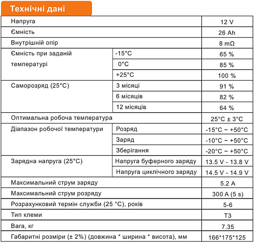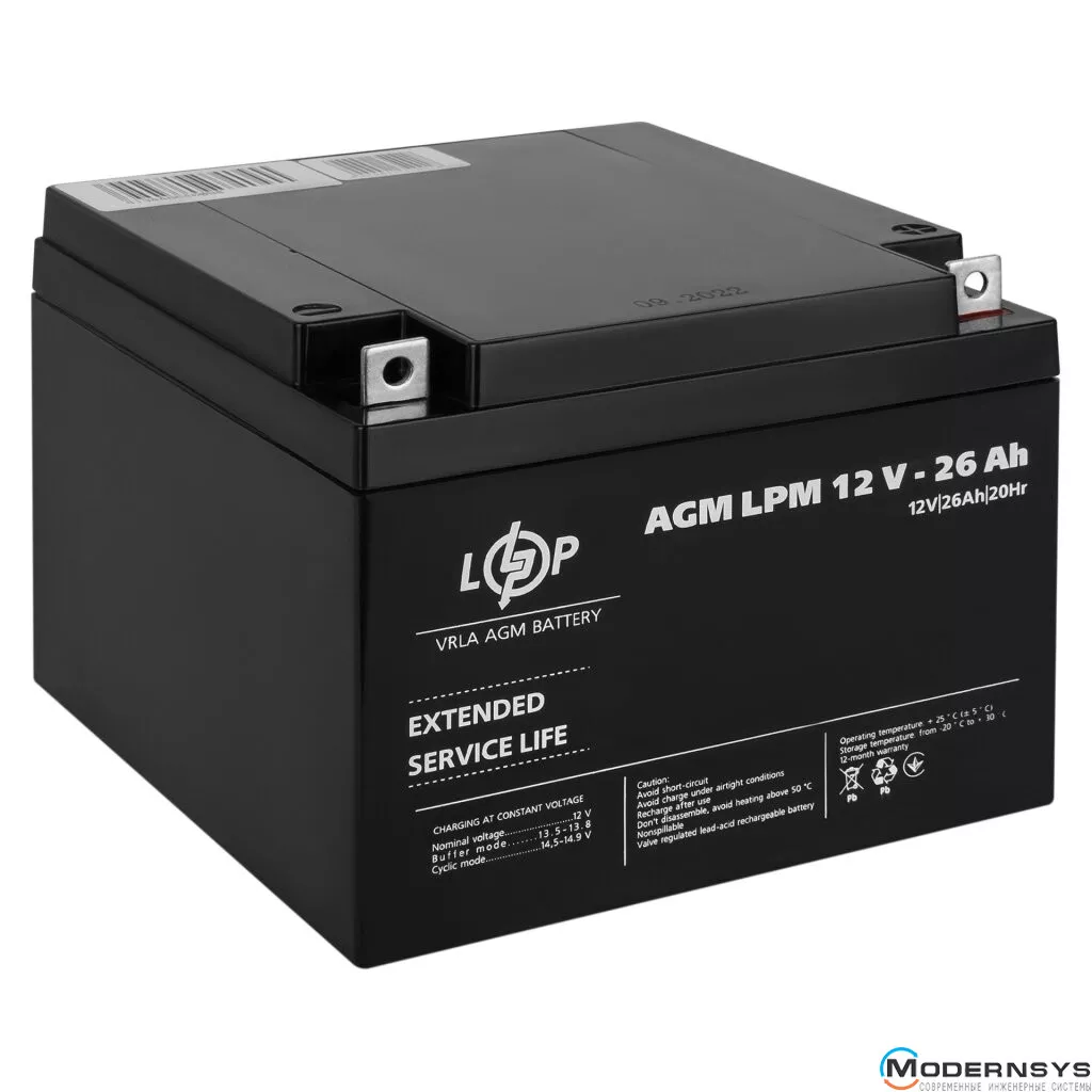Технические характеристики: Аккумулятор LogicPower (Лоджик Повер) AGM LPM 12V - 26 Ah