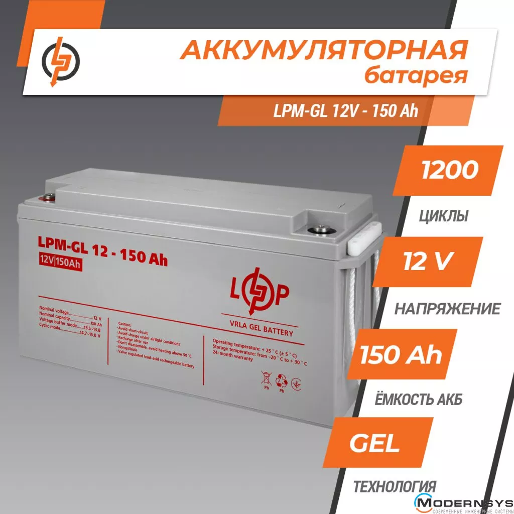 Технические характеристики: Аккумулятор LogicPower (Лоджик Повер) гелевой LPM-GL 12V - 150 Ah