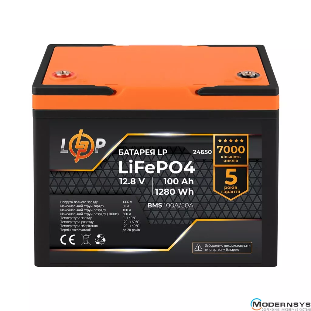 Аккумулятор LP LiFePO4 12,8V - 100 Ah (1280Wh) (BMS 100A/50А) пластик Smart BT