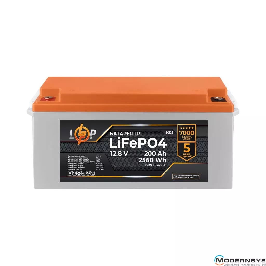 Аккумулятор LP LiFePO4 12,8V - 200 Ah (2560Wh) (BMS 100A/50А) пластик