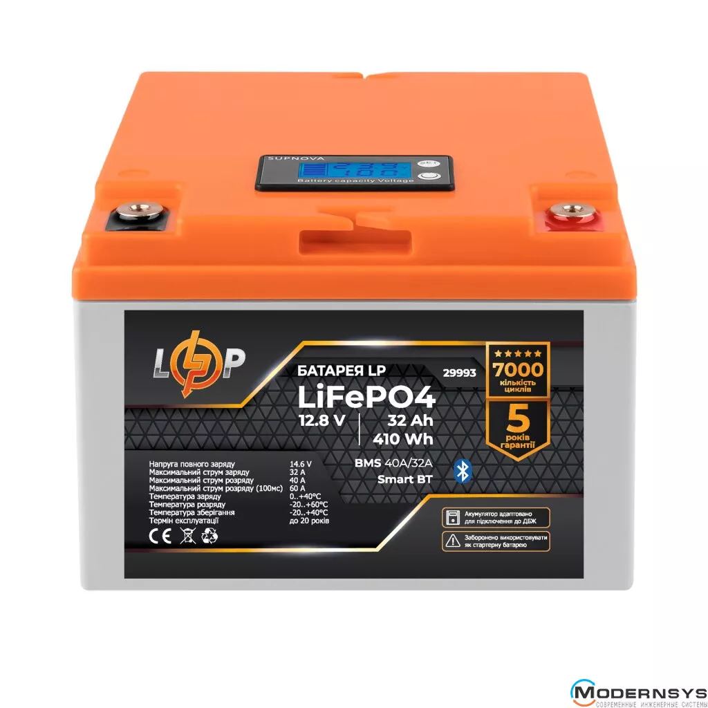Аккумулятор LP LiFePO4 12,8V - 32 Ah (410Wh) (BMS 40А/32A) пластик LCD Smart BT