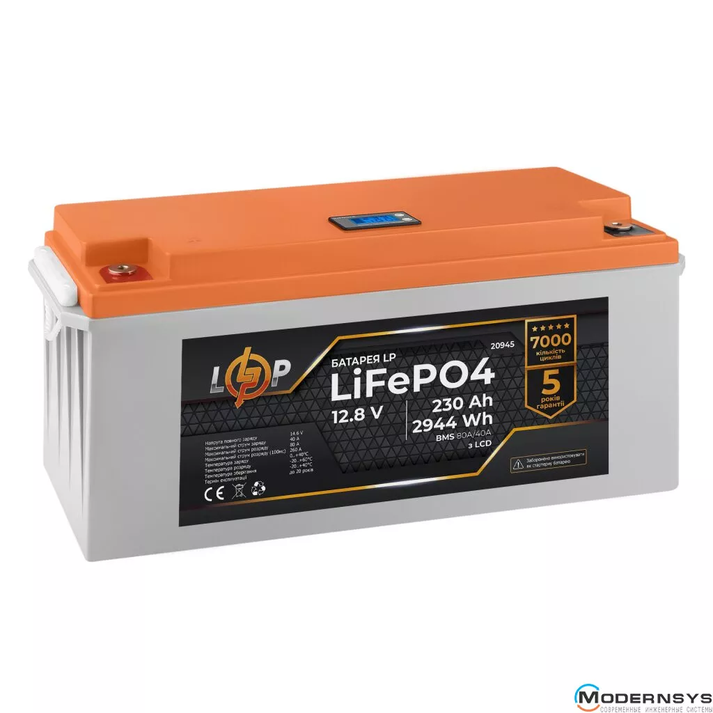 Описание: Аккумулятор LogicPower (Лоджик Повер) LiFePO4 12V (12,8) - 230 Ah (2944Wh) (BMS 80A/40A) пластик