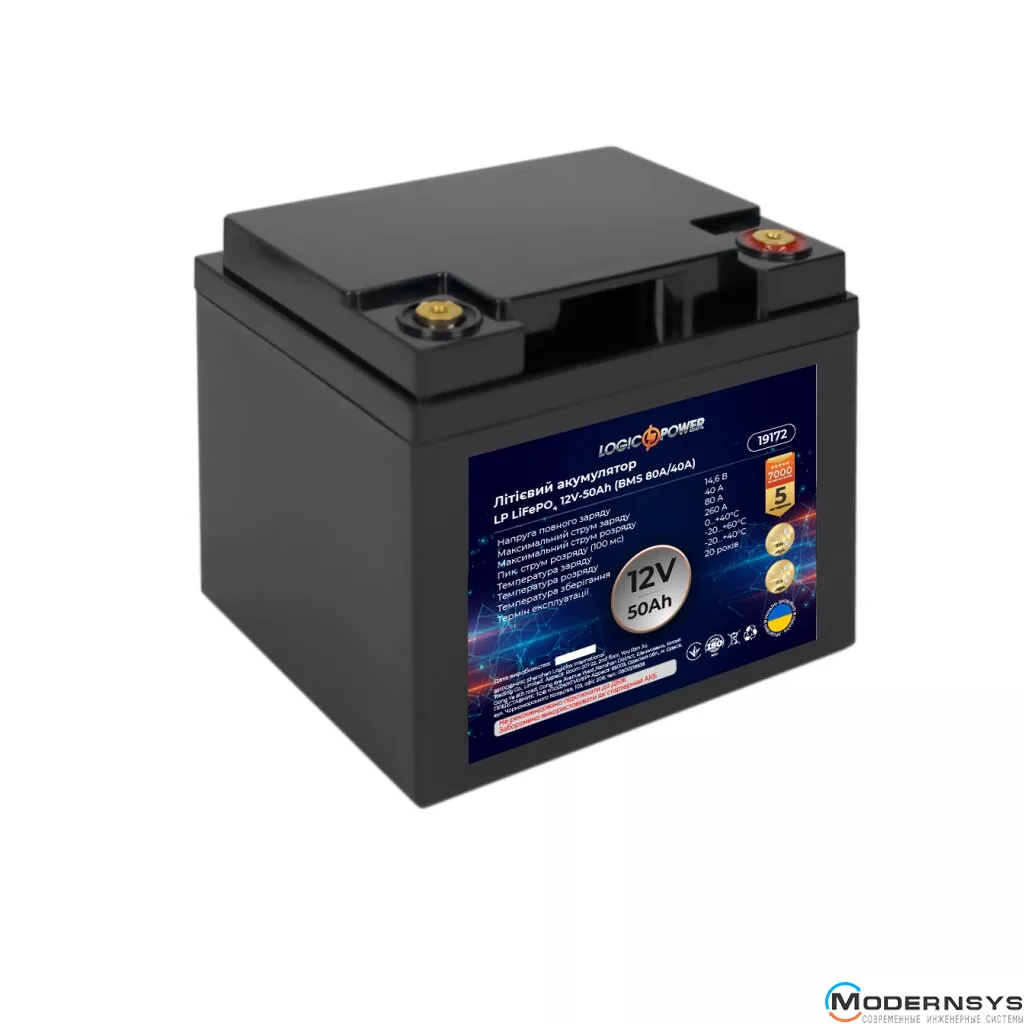 Аккумулятор LogicPower LiFePO4 12V (12,8V) – 50 Ah (640Wh) (BMS 80A/40А) пластик (LP19172)