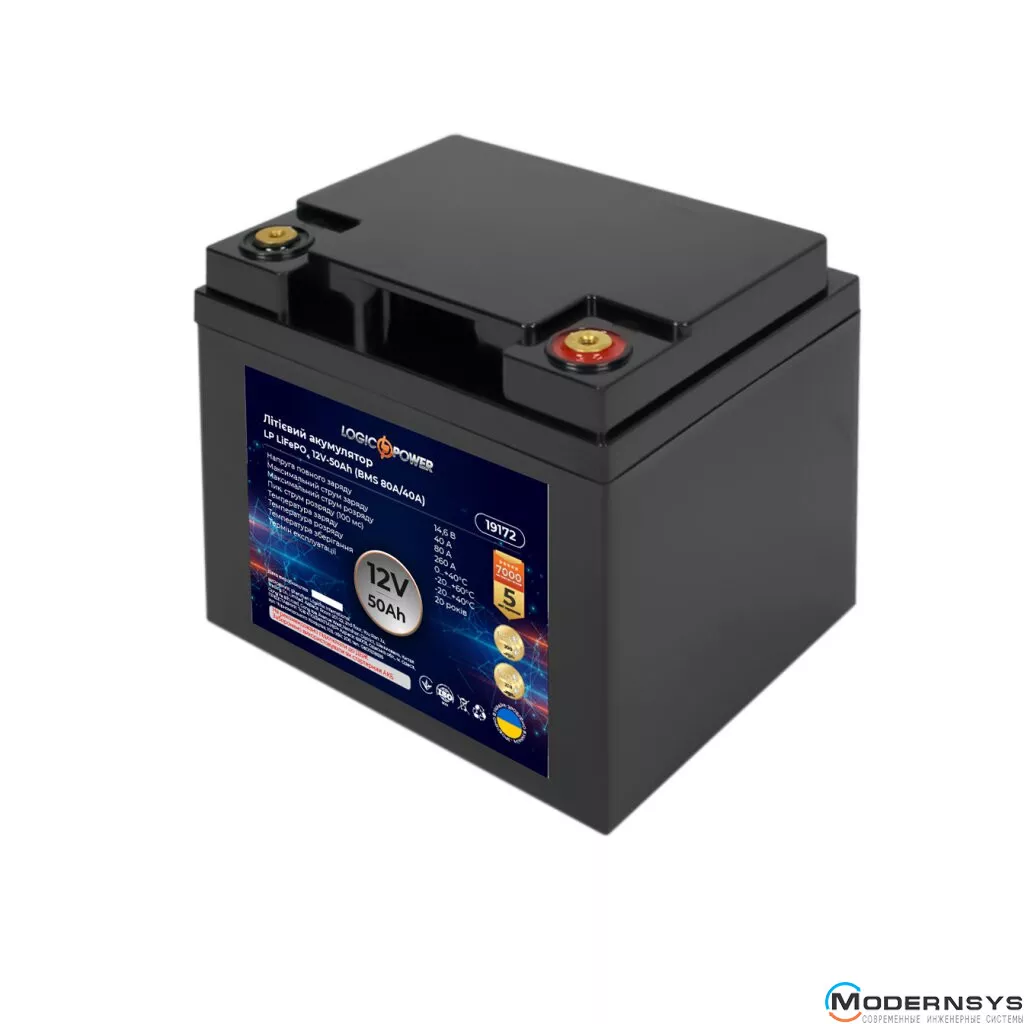 Технические характеристики: Аккумулятор LogicPower (Лоджик Повер) LiFePO4 12V (12,8V) – 50 Ah (640Wh) (BMS 80A/40А) пластик