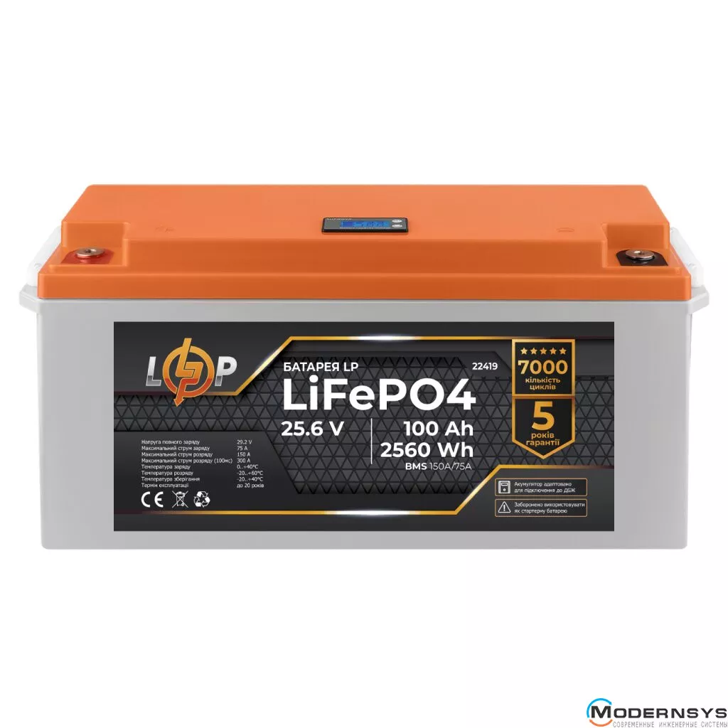 Аккумулятор LogicPower LiFePO4 24V (25,6V) - 100 Ah (2560Wh) (BMS 150/75А) пластик LCD для ИБП (LP22419)