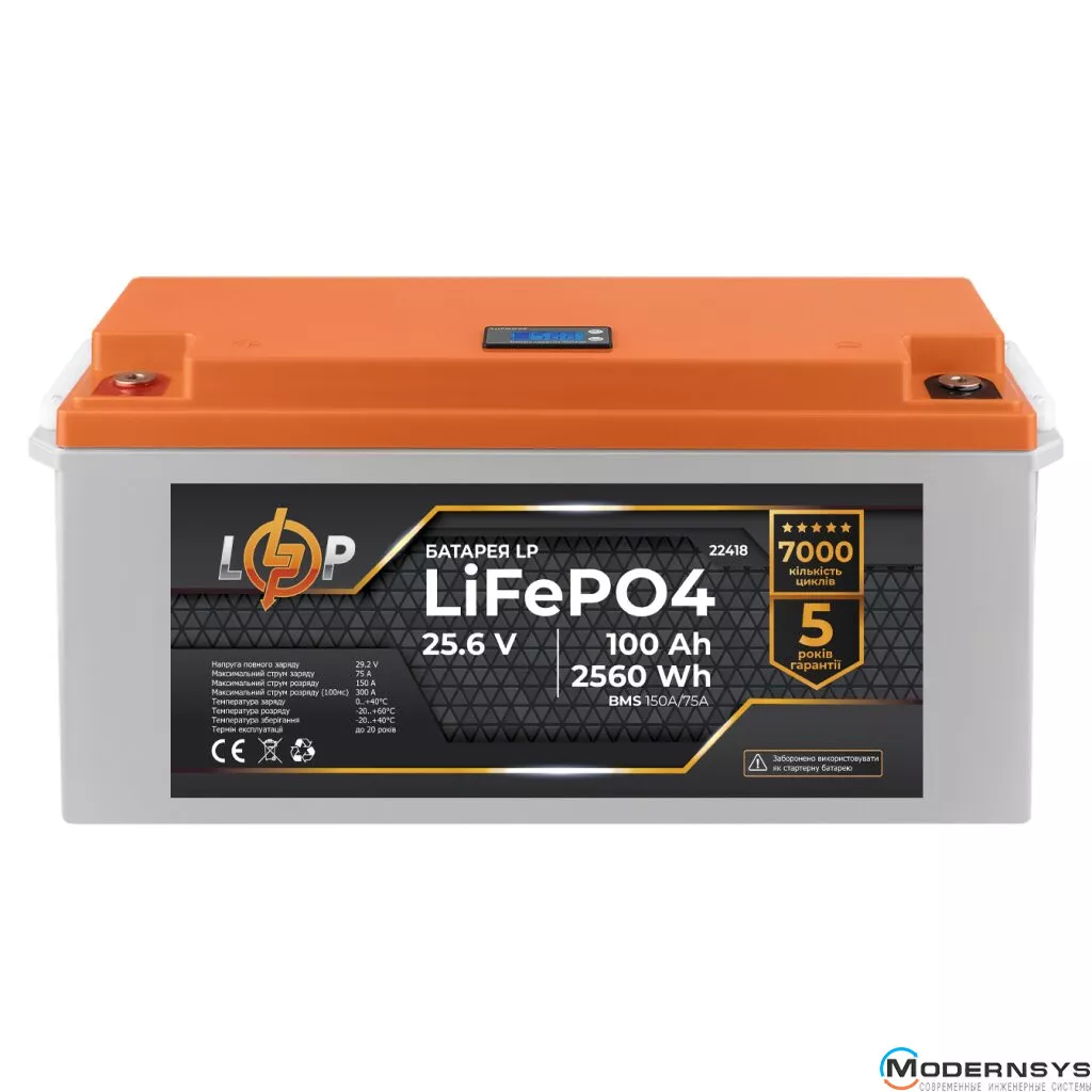 Аккумулятор LogicPower LiFePO4 24V (25,6V) – 100 Ah (2560Wh) (BMS 150/75А) пластик LCD (LP22418)