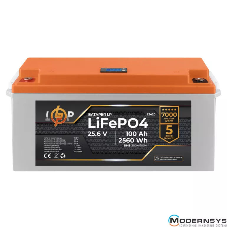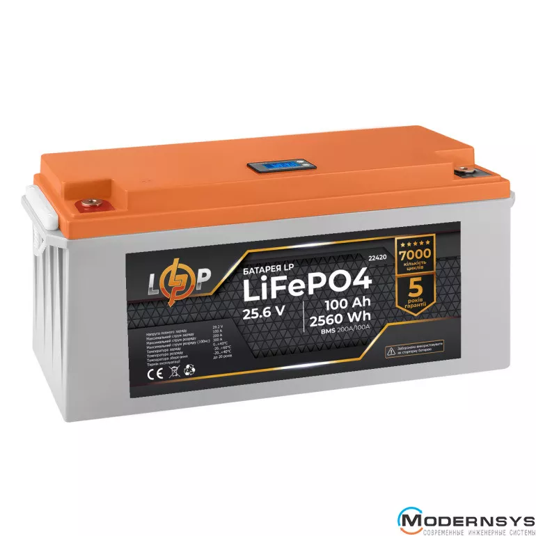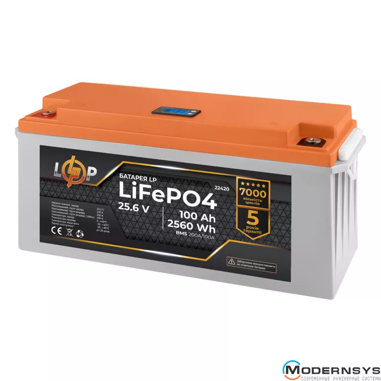 Аккумулятор LogicPower LiFePO4 24V (25,6V) – 100 Ah (2560Wh) (BMS 200/100А) пластик LCD (LP22420)