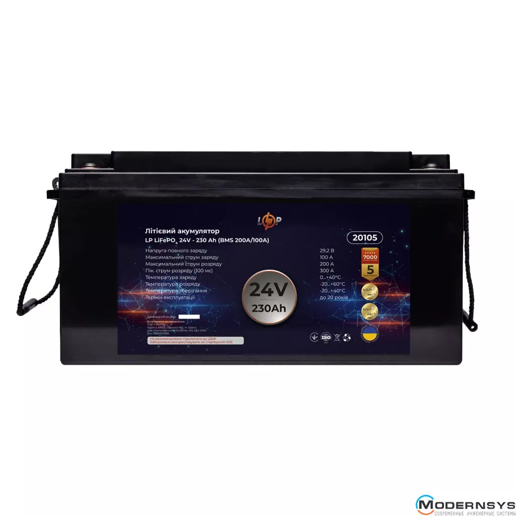 Технические характеристики: Аккумулятор LogicPower (Лоджик Повер) LiFePO4 24V (25,6V) - 230 Ah (5888Wh) (BMS 200A/100A) пластик