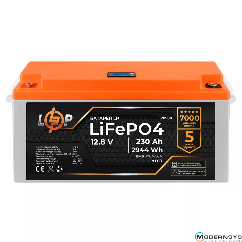 Аккумулятор LogicPower LiFePO4 для ИБП LCD 12V (12,8V) - 230 Ah (2944Wh) (BMS 100A/50A) пластик (LP20900)