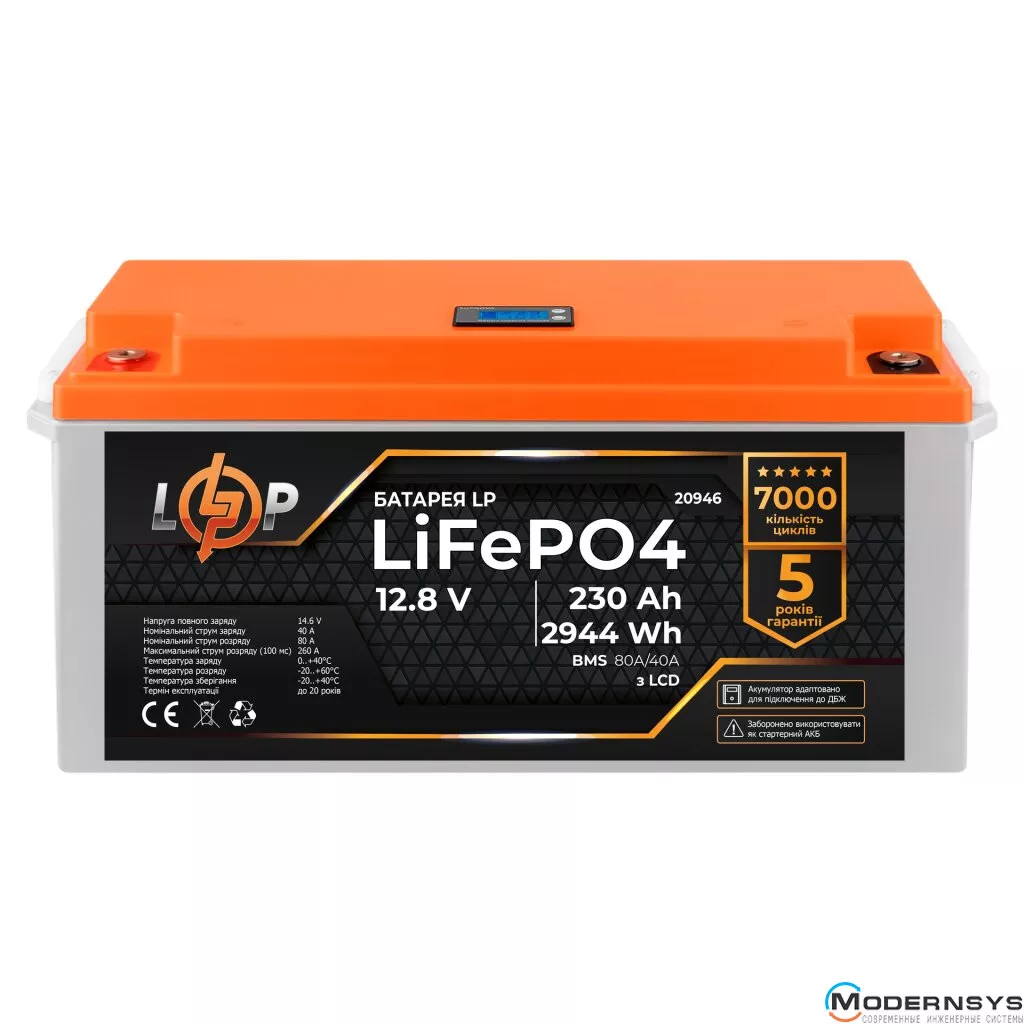 Аккумулятор LogicPower LiFePO4 для ИБП LCD 12V (12,8V) - 230 Ah (2944Wh) (BMS 80A/40A) пластик (LP20946)