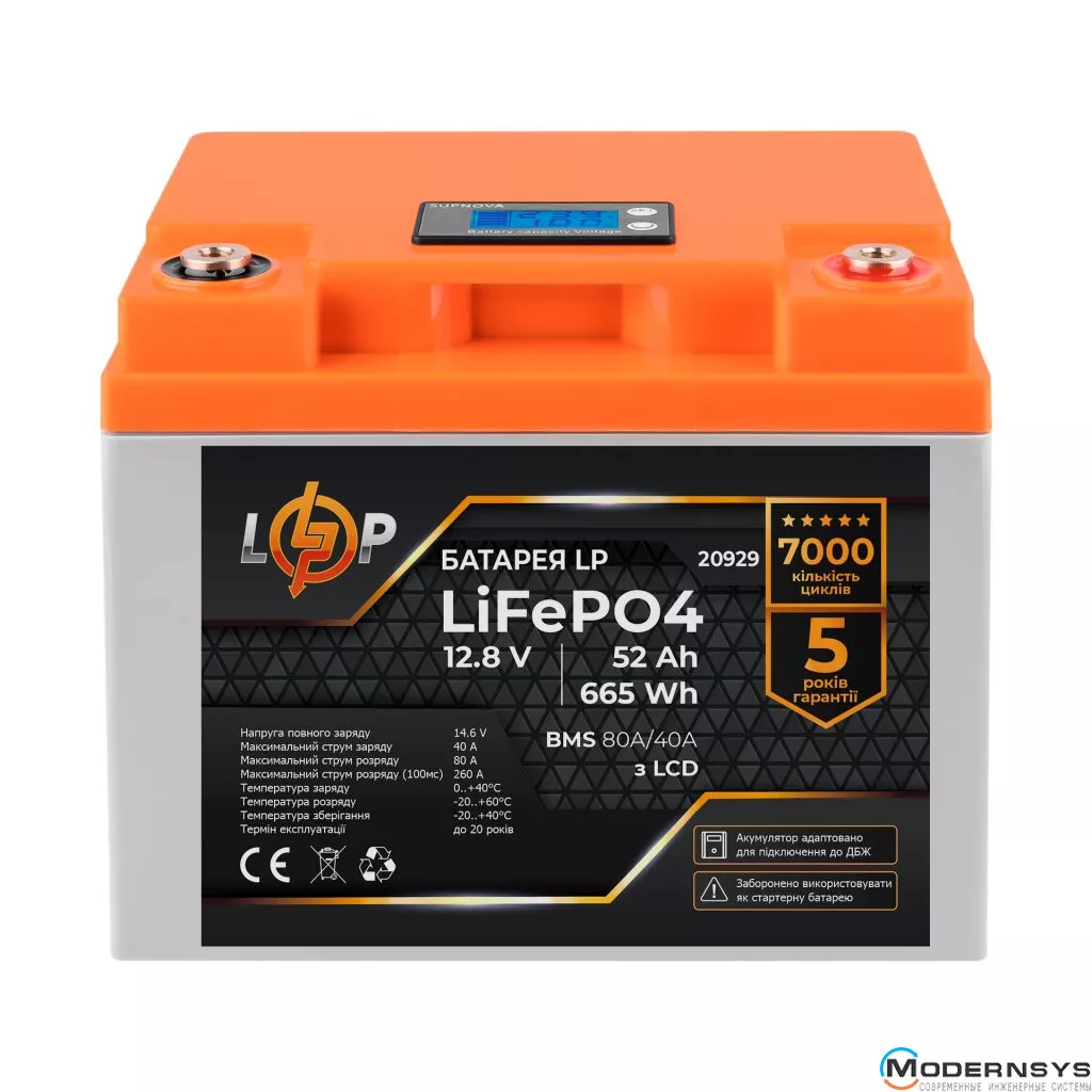 Аккумулятор LP LiFePO4 для ИБП LCD 12V (12,8V) - 52 Ah (665Wh) (BMS 80A/40А) пластик