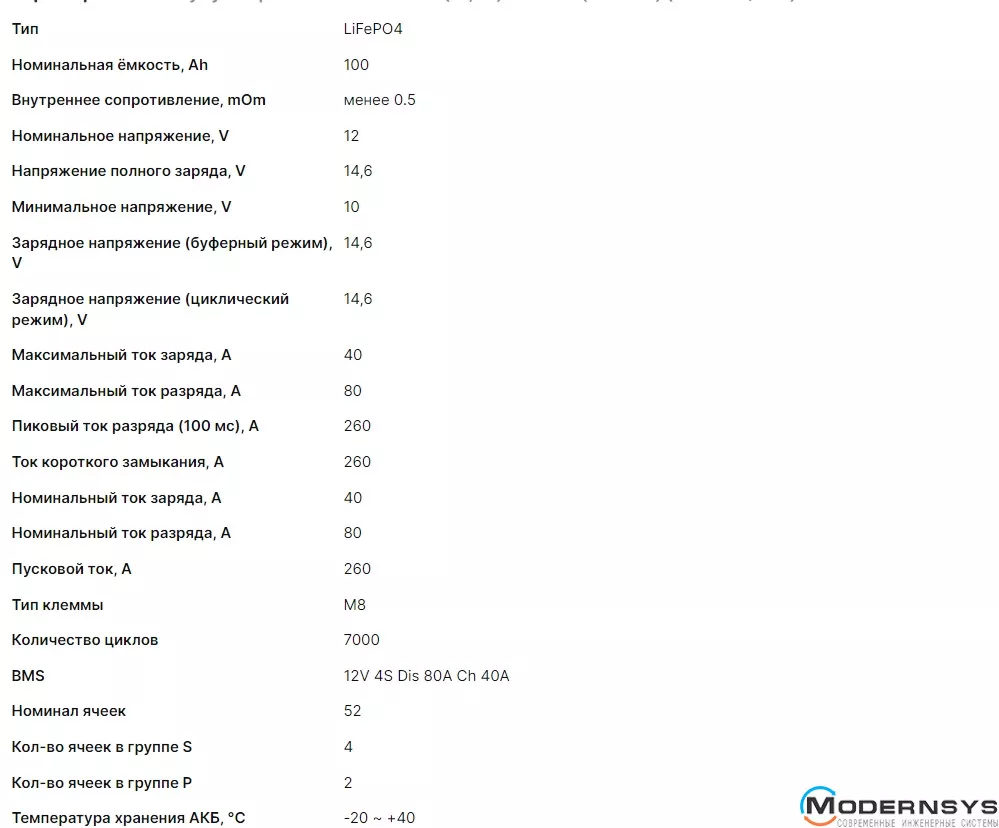 Аккумуляторные батареи LiFePO4 имеют очень низкий саморазряд, 20% емкости, при хранении более 10 лет.