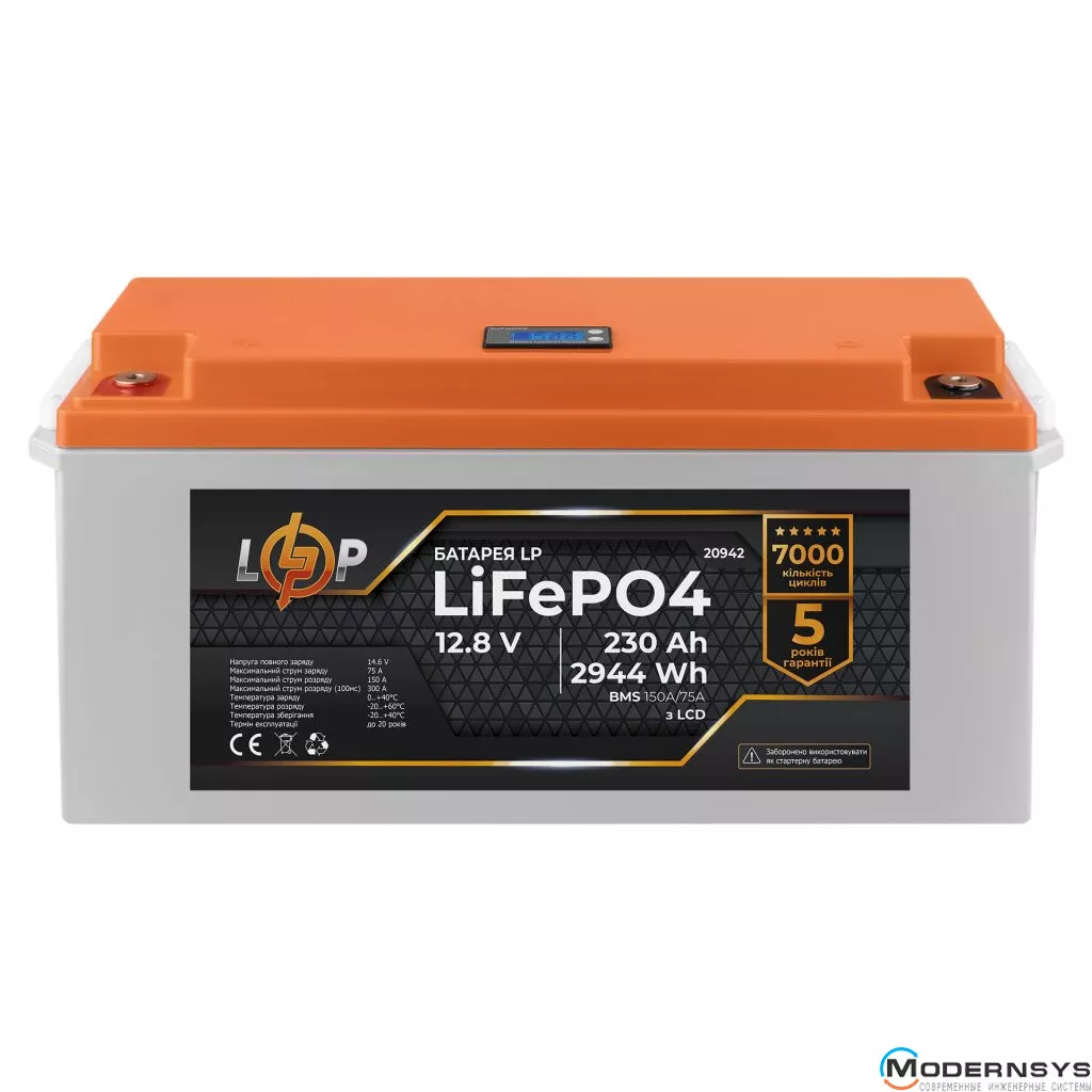 Аккумулятор LogicPower LiFePO4 LCD 12V (12,8V) – 230 Ah (2944Wh) (BMS 150A/75A) пластик (LP20942)