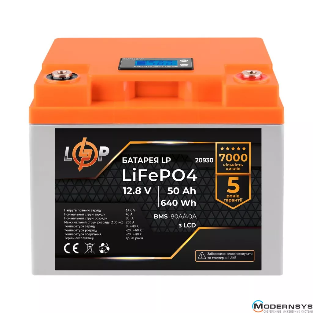 Аккумулятор LP LiFePO4 LCD 12V (12,8V) - 50 Ah (640Wh) (BMS 80A/40А) пластик