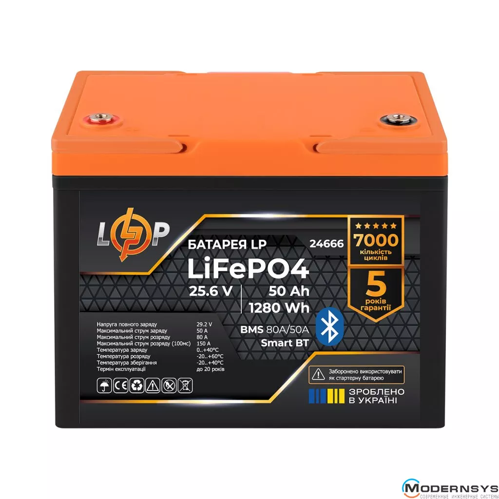 Аккумулятор LogicPower LP LiFePO4 25,6V - 50 Ah (1280Wh) (BMS 80A/50А) пластик Smart BT (LP24666)