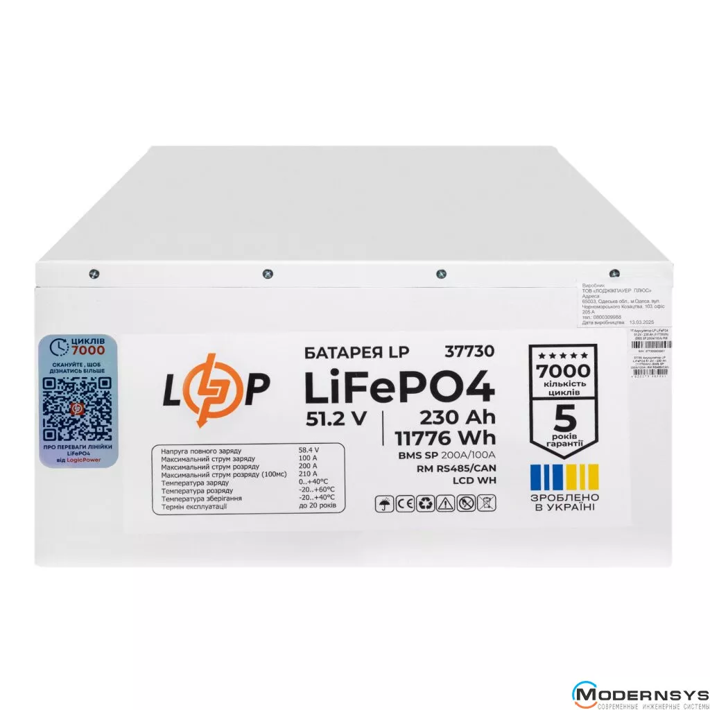Аккумулятор LogicPower LP LiFePO4 51,2V - 230 Ah (11776Wh) (BMS SP 200A/100A) RM RS485/CAN LCD WH (LP37730)
