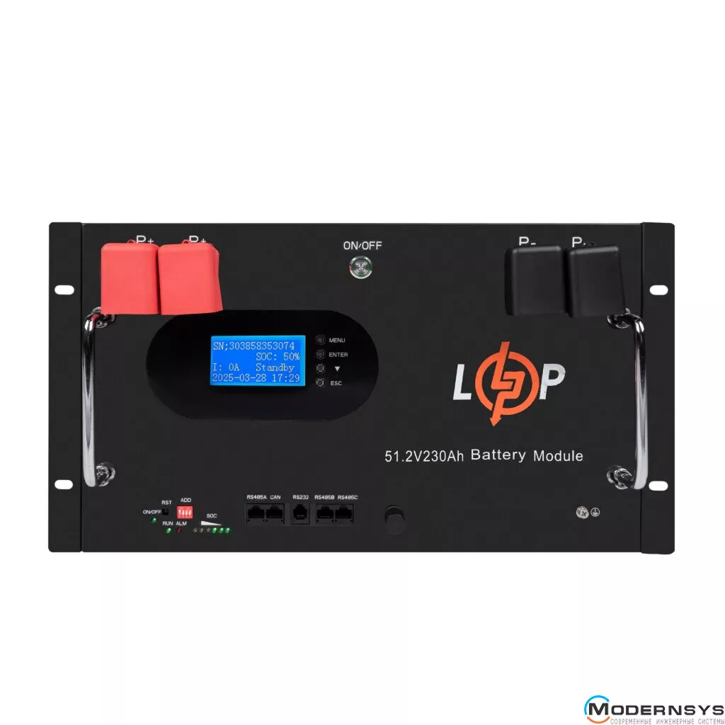 Аккумулятор LogicPower LP LiFePO4 51,2V - 230 Ah (11776Wh) (Smart BMS 200A) с LCD RM AB RS485/CAN (LP30386)