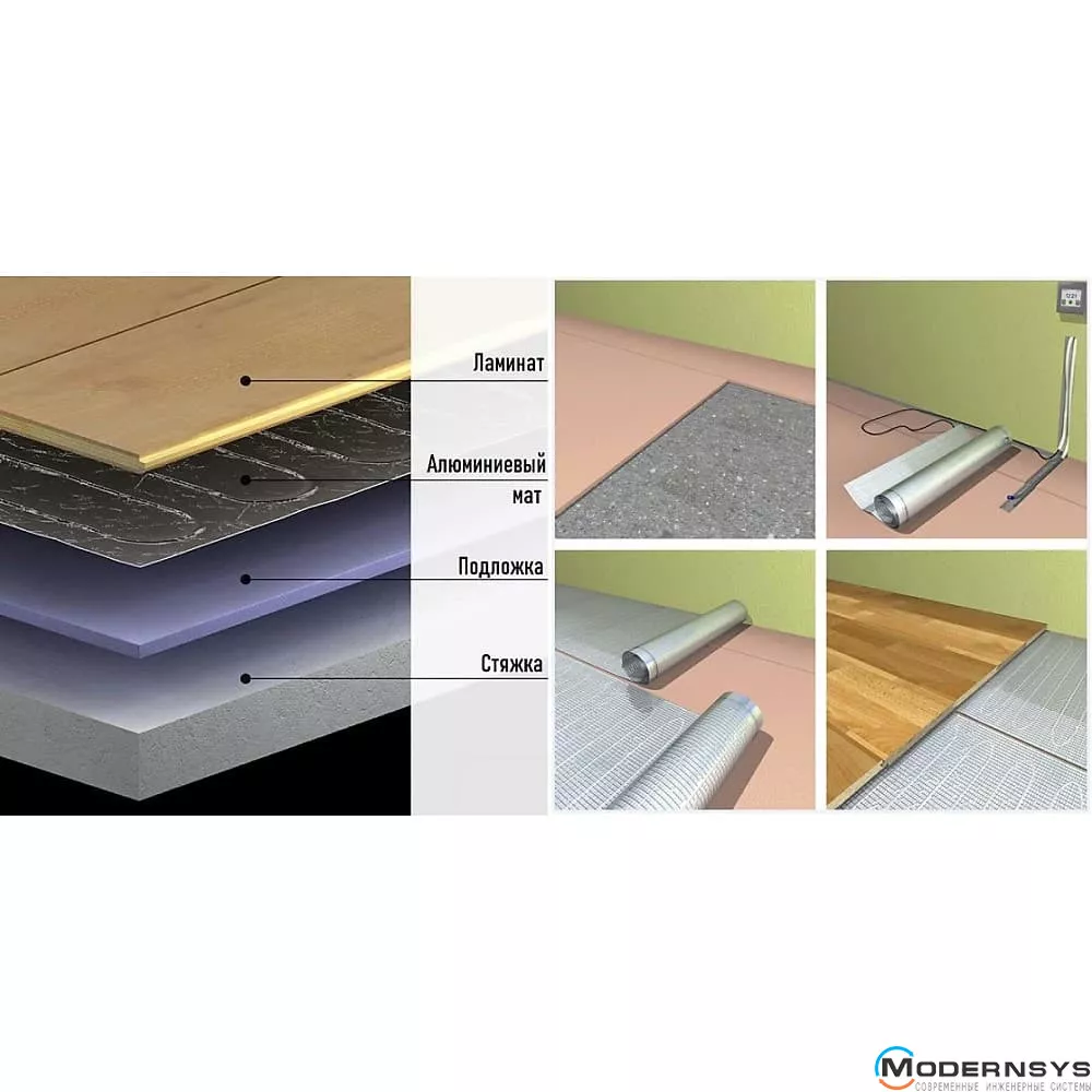 Нагревательный мат всегда помещается между изоляционной подложкой и паркетом или ламинатом в конструкции плавающего пола.