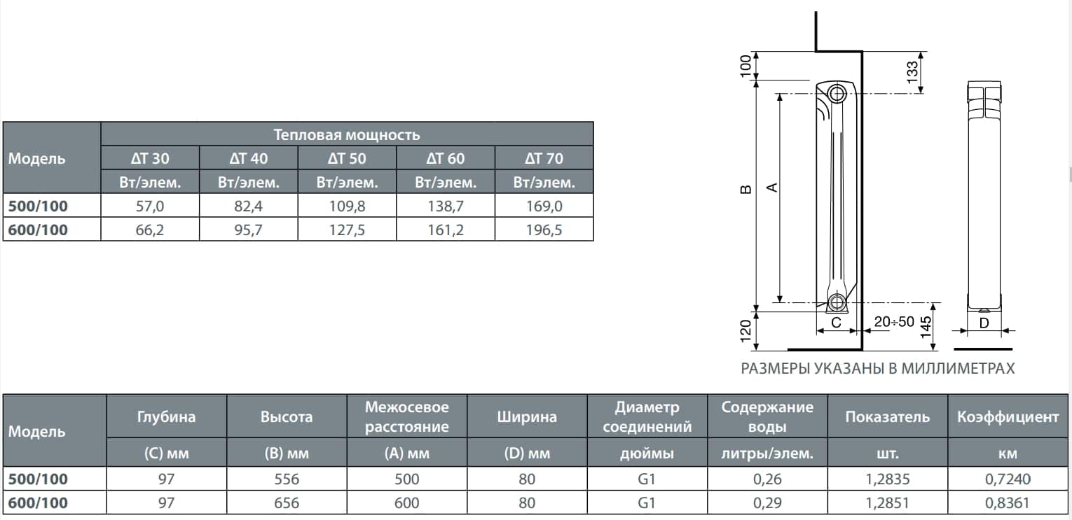 Внимание: Перед приобретением радиаторов необходимо уточнить параметры систем отопления по месту установки радиаторов. Несоответствие технических характеристик радиатора и параметров систем отопления может привести к преждевременному выходу из строя радиаторов в процессе эксплуатации.