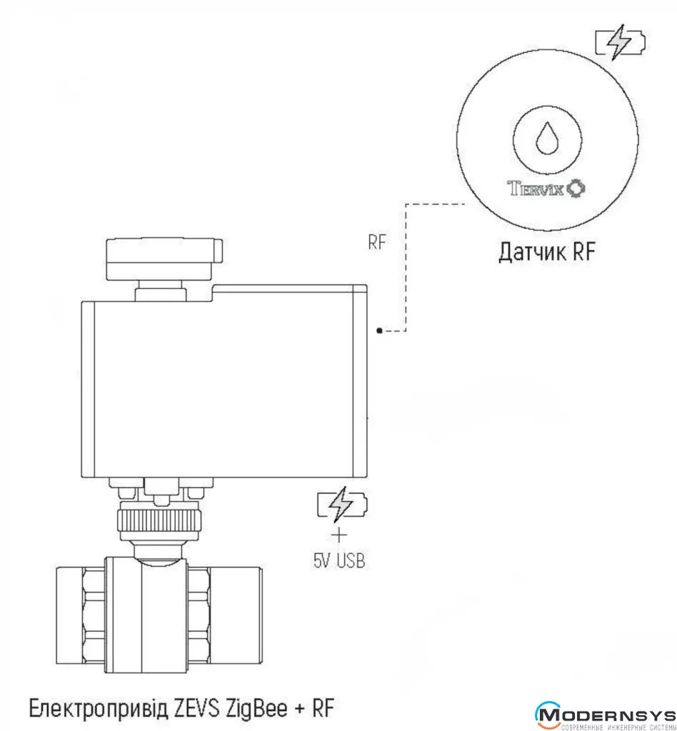 Автономная система защиты от затопления RF ZEVS Tervix Water Stop 3/4'' (с RF датчиками) 0000782579 573 грн