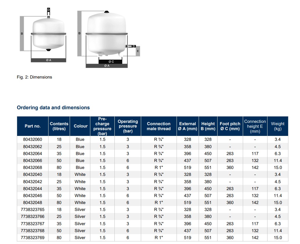 Технические характеристики: Бак мембранный расширительный Buderus (Будерус) Logafix 50 л, 6 бар, белый