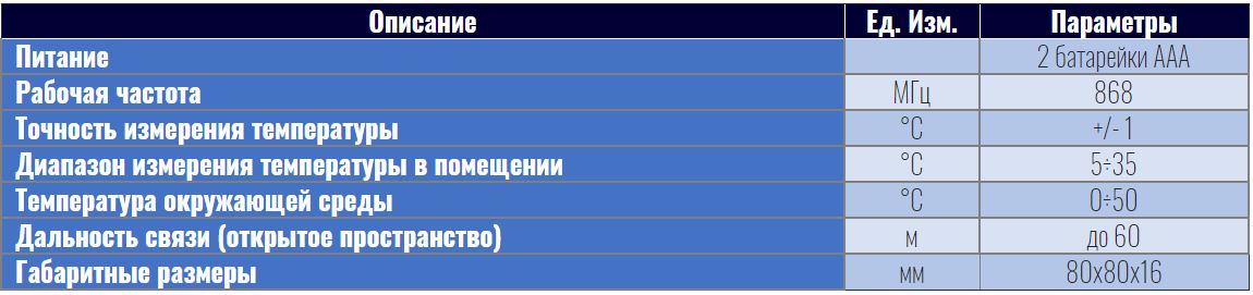 Технические характеристики для датчика температуры TECH C-8r