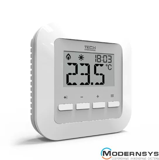 При наличии датчика, также можно управлять теплыми полами. Настройка и работа с терморегулятором осуществляется с помощью дисплея с подсветкой и удобным механическим кнопкам. Точность настройки температуры с шагом в 0,1 °С, позволят установить Вам комфортную температуру в доме и значительно снизить расходы топлива. Замер температуры в комнате выполняет встроенный температурный датчик.
