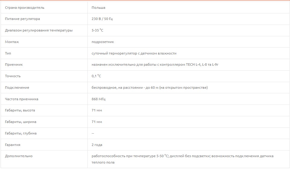 - встроенный температурный датчик и датчик влажности воздуха, а также возможность подключения датчика “теплого пола”;