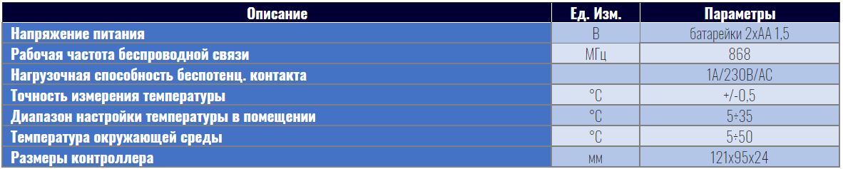 Технические характеристики для беспроводного комнатного термостата Tech R-6s