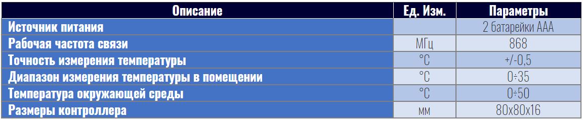 Технические характеристики для беспроводного комнатного термостата TECH R-8b