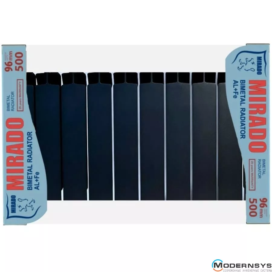 - Гарантия от производителя на биметаллический радиатор Mirado 25 лет (при условии соблюдения норм и условий монтажа и эксплуатации описанных в паспорте изделия)