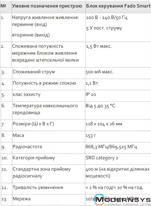 Технические характеристики: Блок управления FADO (Фадо) SMART