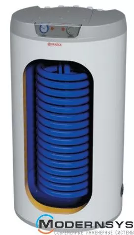 Для подогрева бытовой горячей воды от теплоносителя газовых котлов настенного исполнения предназначена линейка бойлеров с верхним расположением всех выводов. Она состоит из напольных моделей с объемом бака 100, 125 и 160 литров, которые имеют круглую форму и обеспечивают нагрев воды с возможностью установки температуры в пределах от 5 до 76ºC. Для регулирования используется термостат, которые управляет работой насосом циркуляции или положением трехходового клапана.