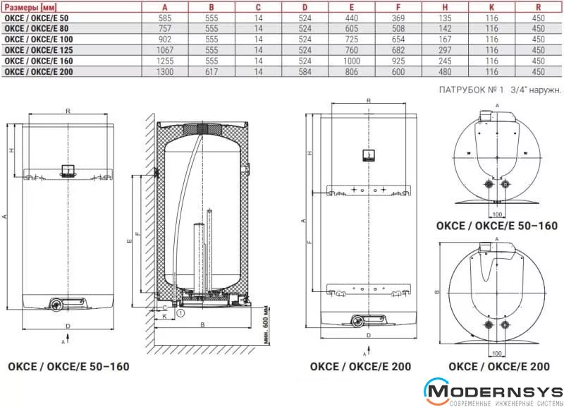- Внутри упаковки находятся: техническая документация и комплект поставки (предохранительный клапан, обратный клапан, индикатор температуры, верхний монтажный кронштейн (2 кронштейна у OKCE 200), комплект крепежа)