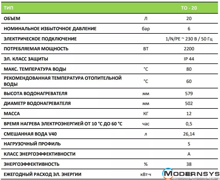Технические характеристики: Бойлер электрический Drazice (Дражица) TO-20.1
