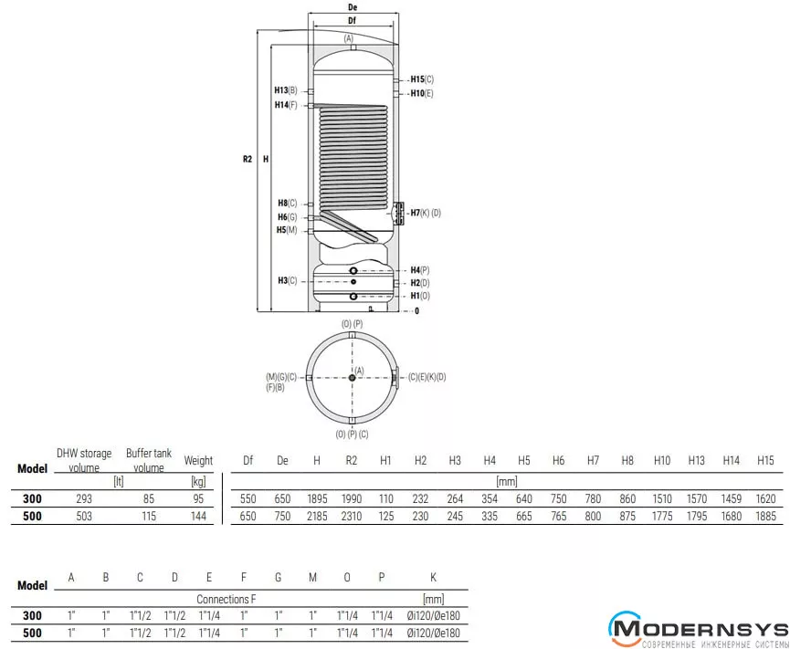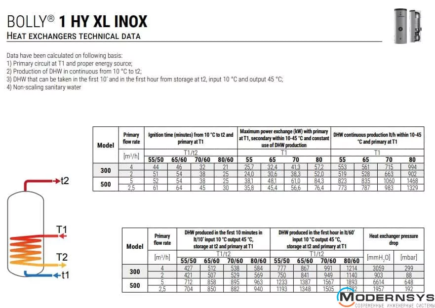 Технические характеристики: Бойлер комбинированный + буфер ТН 300/85 л Cordivari (Кордивари) BOLLY® 1 HY XL INOX CLASS A (1 змеевик)