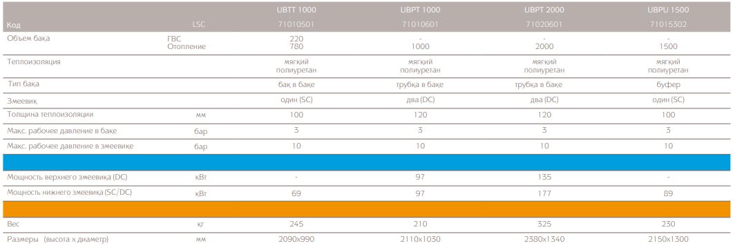 Технические характеристики для бойлера косвенного нагрева Baxi UBPT
