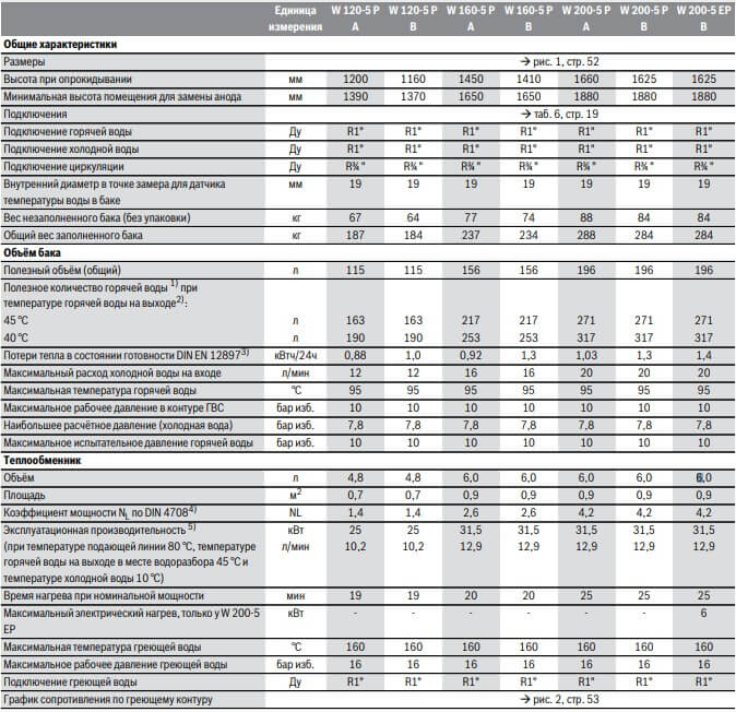Технические характеристики: Бойлер косвенного нагрева Bosch (Бош) W 160-5 P1 B