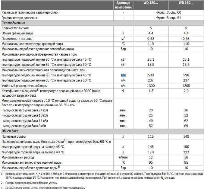 Технические характеристики: Бойлер косвенного нагрева Bosch (Бош) WD 160 B