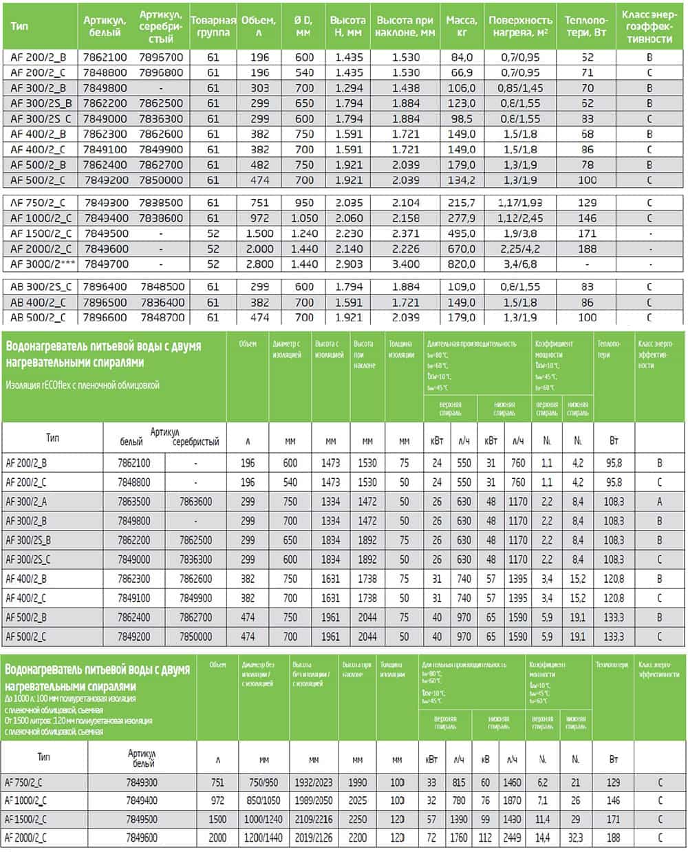 Название товара КОД Объем (л) Цена Бойлер косвенного нагрева Reflex AF/2 теплообменника 300 л 00006450948 414 грн Бойлер косвенного нагрева Reflex AF/2 теплообменника 200 л 00006450838 520 грн Бойлер косвенного нагрева Reflex AF/2 теплообменника 500 л 00006451171 072 грн Бойлер косвенного нагрева Reflex AF/2 теплообменника 750 л 000064512128 104 грн Бойлер косвенного нагрева Reflex AF/2 теплообменника 400 л 00006451060 083 грн Бойлер косвенного нагрева Reflex AF/2 теплообменника 1000 л 000064507152 214 грн