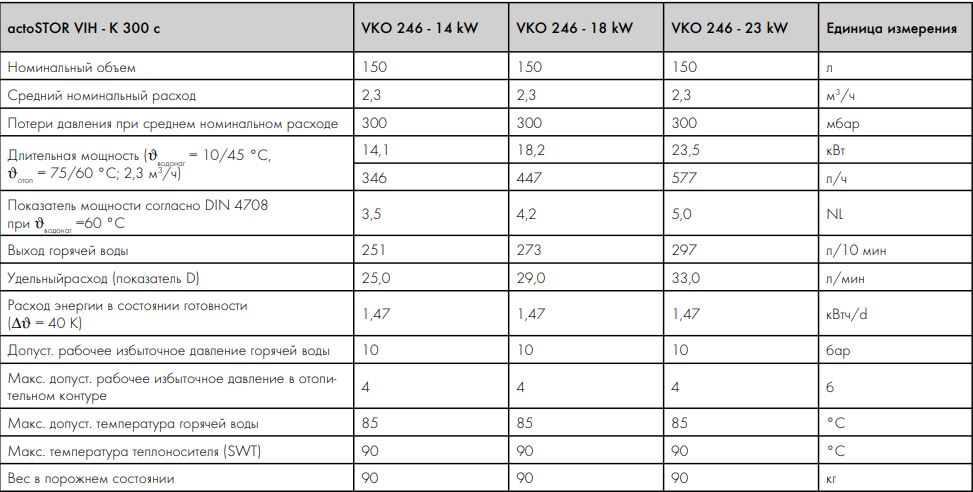Технические характеристики для бойлера косвенного нагрева Vaillant VIH K 300