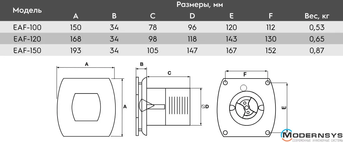 Вентилятор EAF-100 отлично подходит для периодической или постоянной вентиляции ванной комнаты, туалета, кухни, комнат курильщиков, кладовок и подсобок в жилых и торговых помещениях.