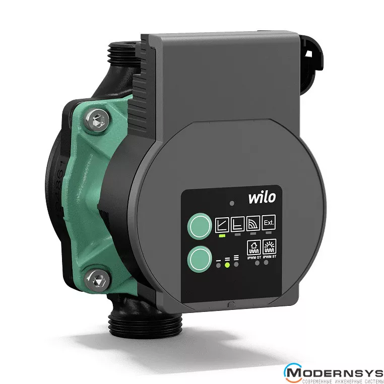 Циркуляционный насос с мокрым ротором с резьбовым соединением, стойкий к токам блокировки ЕС-двигатель и встроенное электронное устройство регулировки мощности.