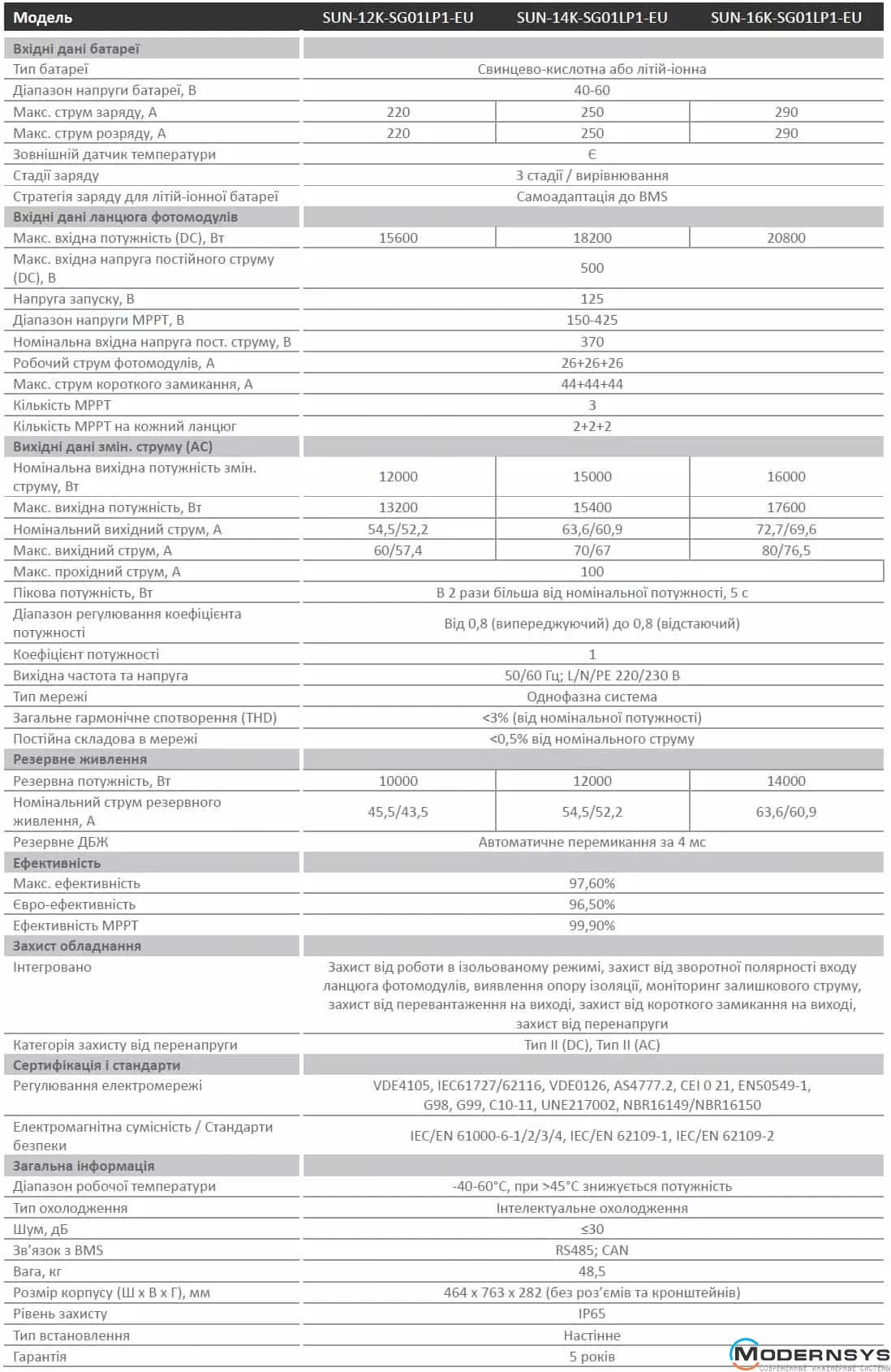 Технические характеристики: DEYE for LogicPower Гибридный однофазный инвертор SUN-16K-SG01LP1-EU