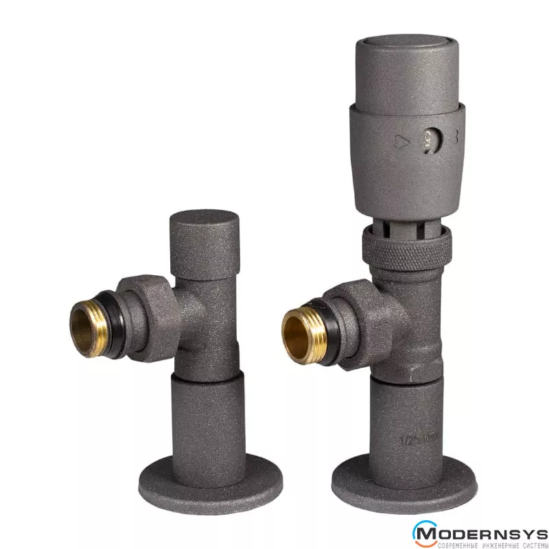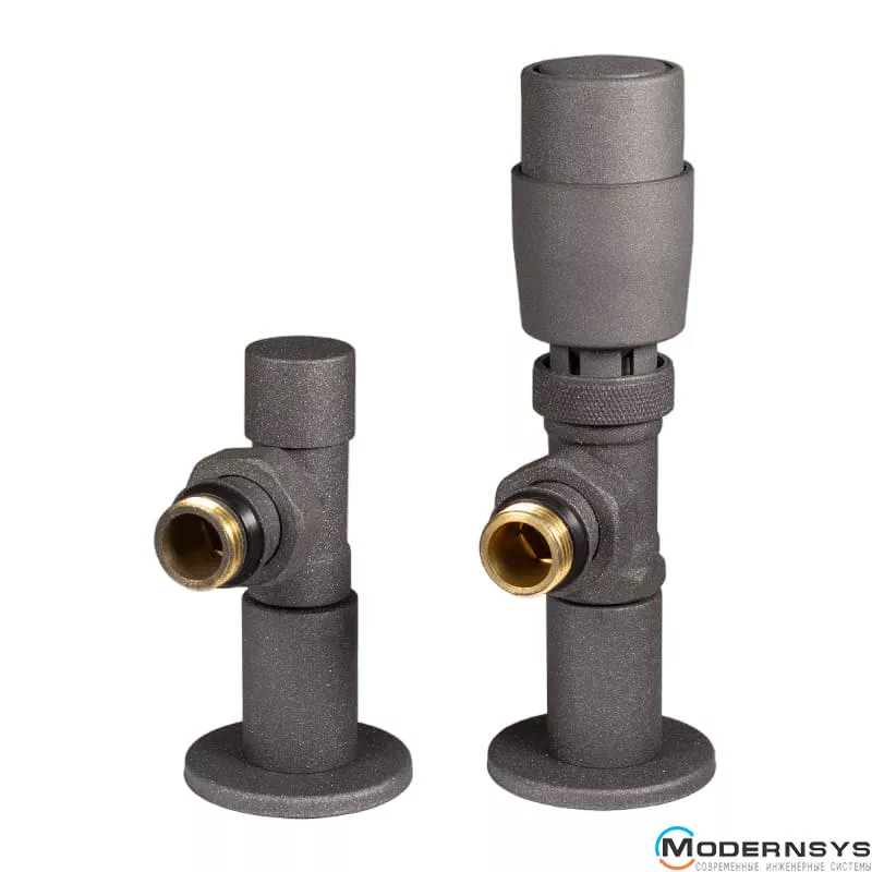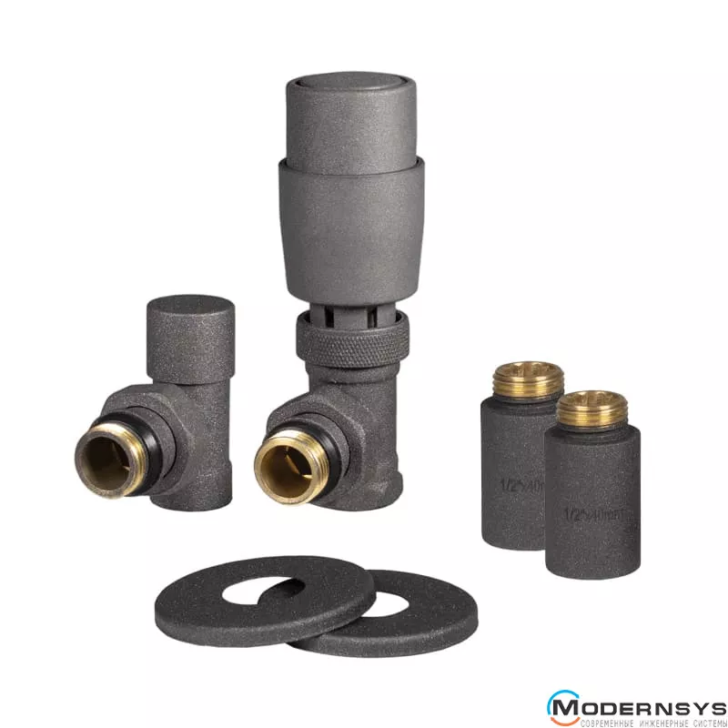 Дизайн краны радиаторные Ideale с термоголовкой 1/2” x 1/2” ВЗ графит угловые (22606)