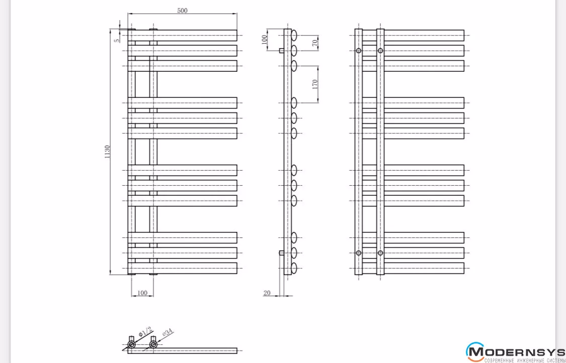 Технические характеристики: Дизайнерский полотенцесушитель ARTTIDESIGN (Арттидизайн) Grasse 12/1130 белый матовый